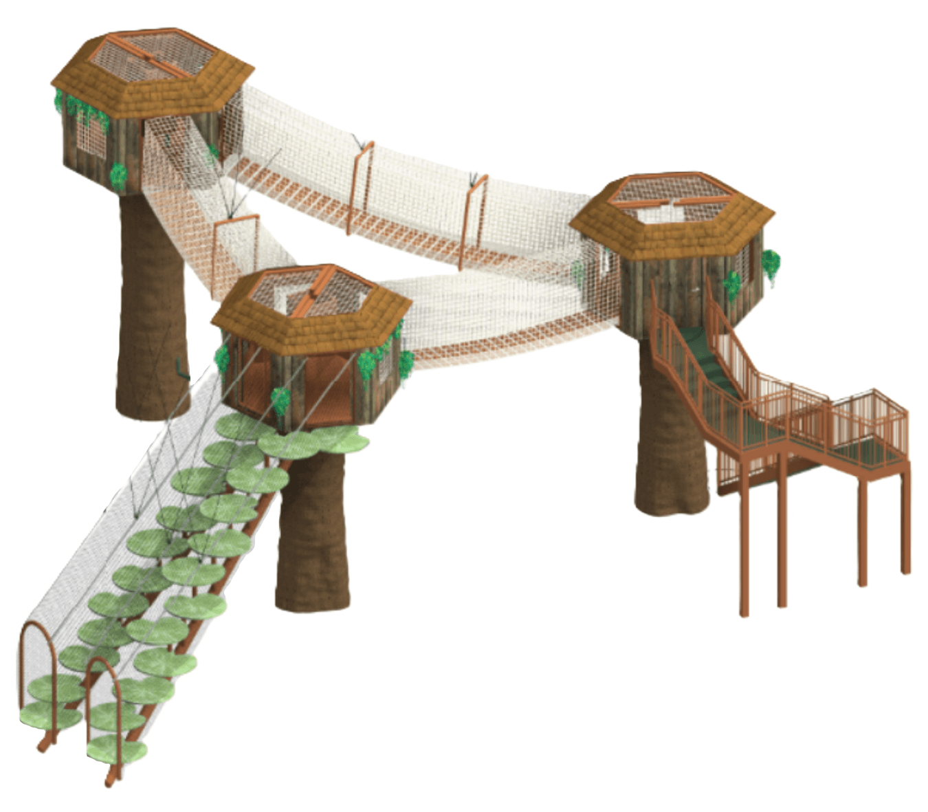 The Canopy walk will feature 3 different tree house themed play areas for children to learn and explore the tree canopy system. After meeting with our sponsors and going over the floor plans, we quickly determined three main constraints in our project: