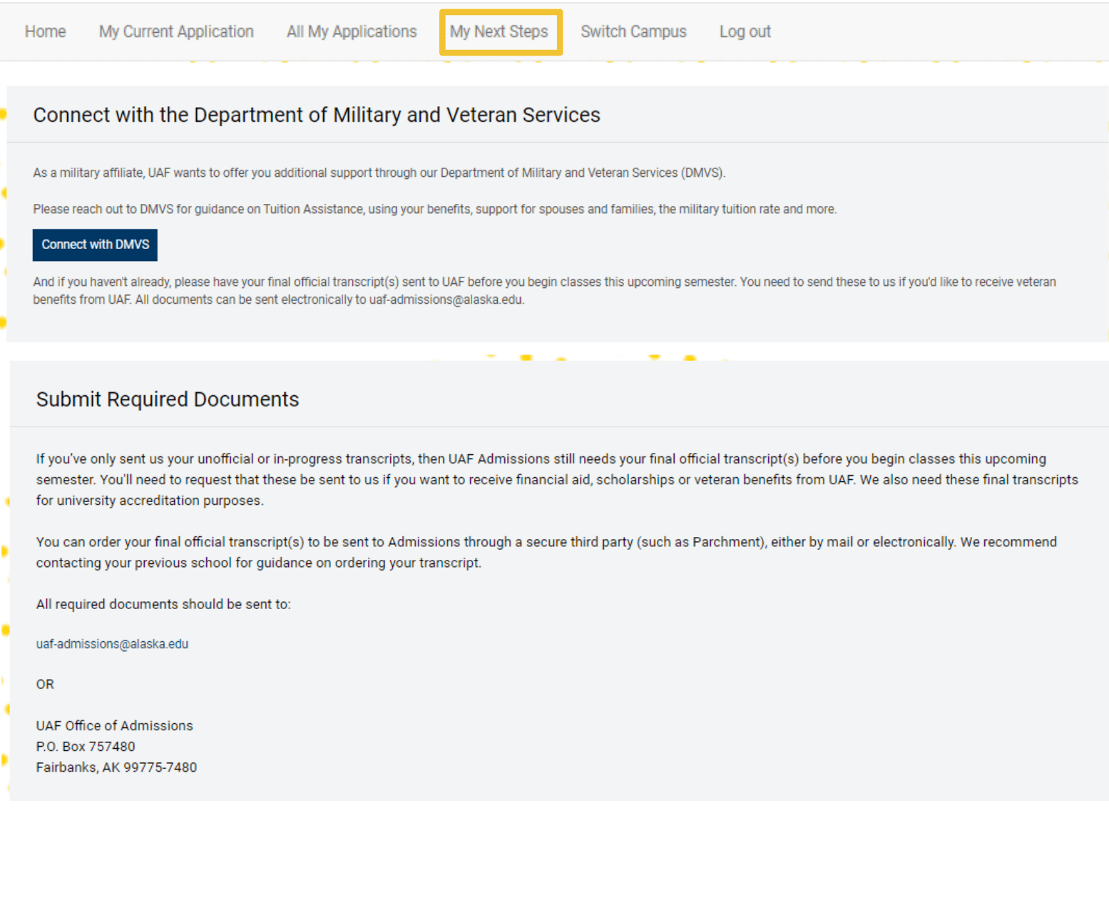 Provided no instructions or links on how to submit incomplete or missing documents. This forced students to stop applying or email support for basic instructions.