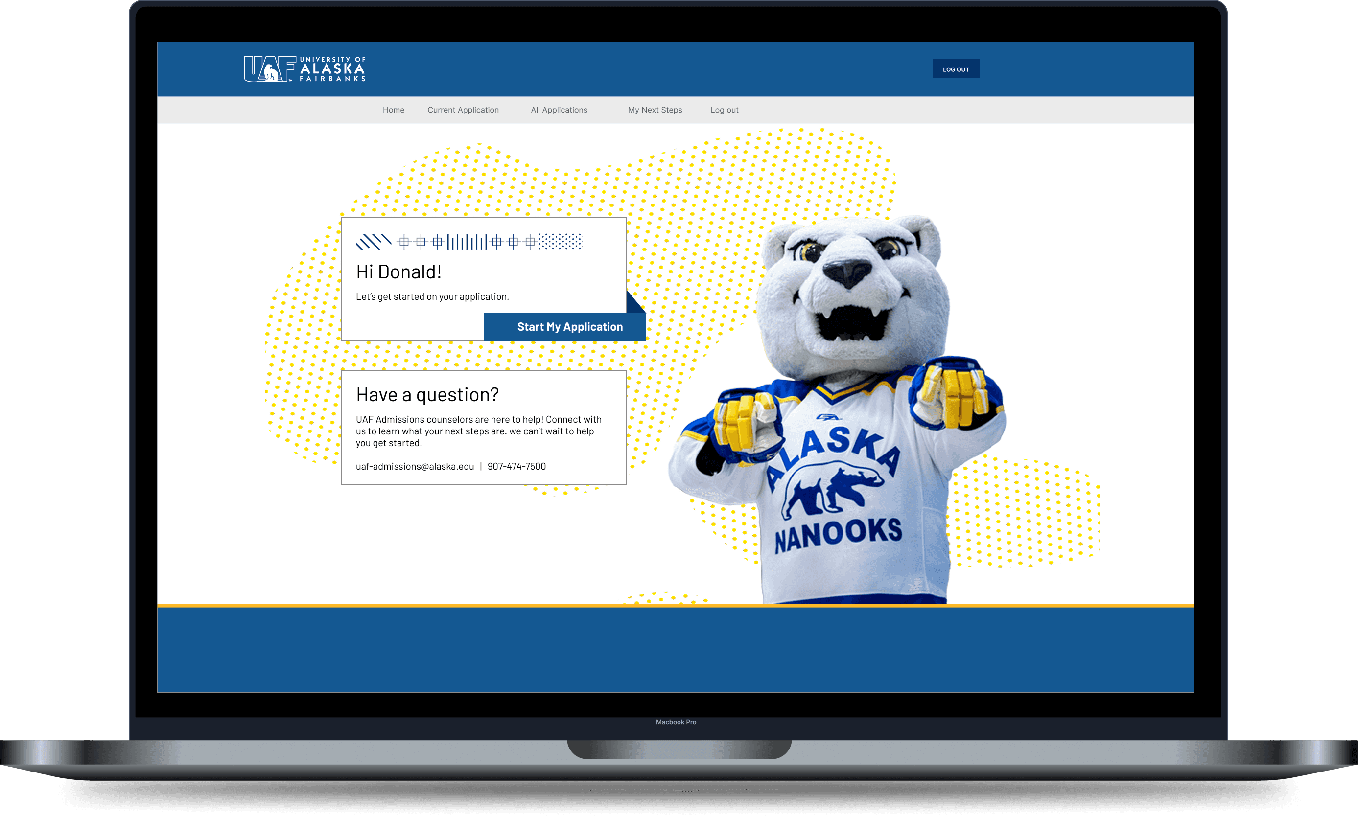 UAF needed to overhaul its application portal to decrease drop-off rates and streamline back-end processing. The existing system was a static, "one-size-fits-all" dashboard shared by three universities.